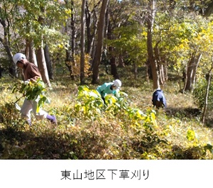 各地区下草刈り、枯れ枝の除去などを行いました。