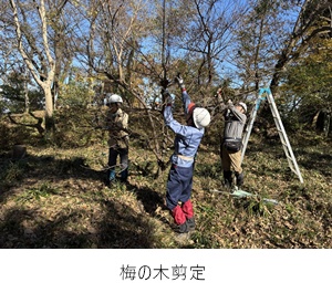 作業内容としては、ウメの剪定を実施したほか、各地区での下草刈り、コグサギエリアにおいて、伸びた下草の刈り払いを行いました。