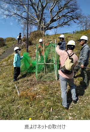 引き続き、植樹した桜を保護するための鹿よけネットを設置し、合計15本の植樹に設置しました。