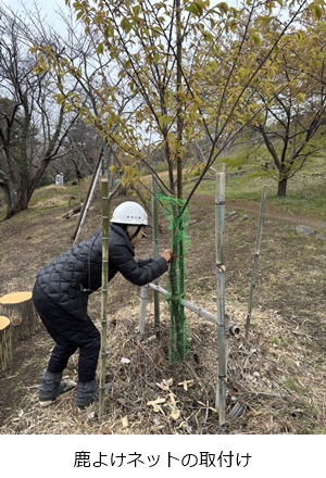植樹した桜を保護するための鹿よけネットを設置しました。