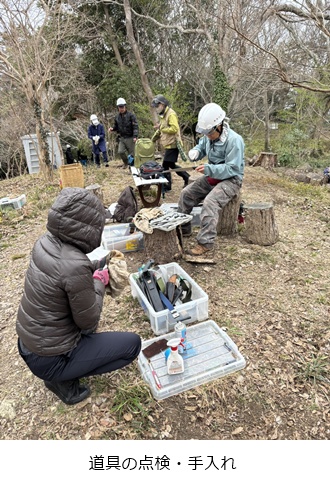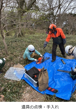 作業内容としては、破損していた桜の植樹支柱の修理を実施したほか、各地区での下草刈り、カツラ林周辺やコグサギエリアにおいて伸びた下草の刈り払いを行いました。