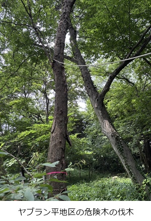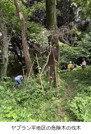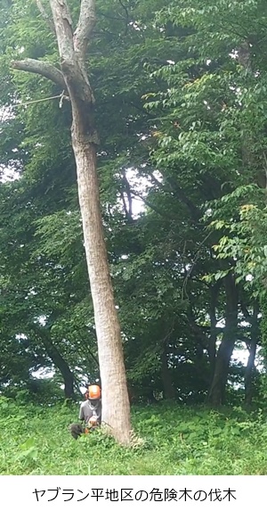 ヤブラン平地区の危険木2本伐木・玉切り、片付けを実施しました。