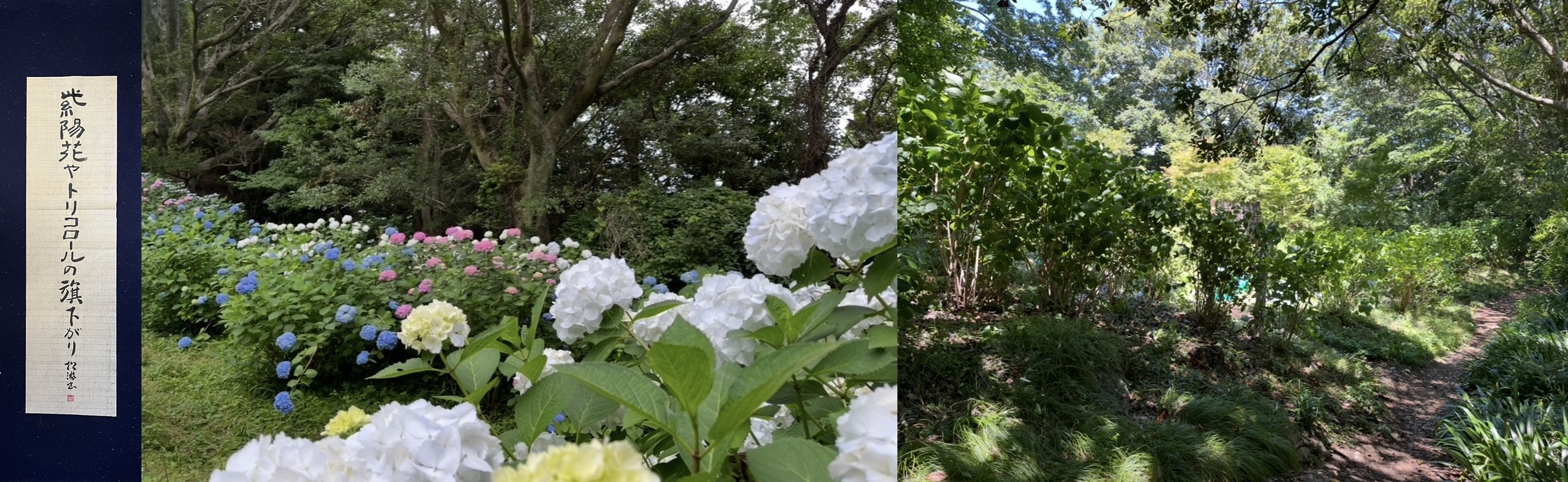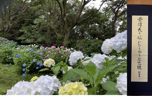 紫陽花やトリコロールの旗下がり
