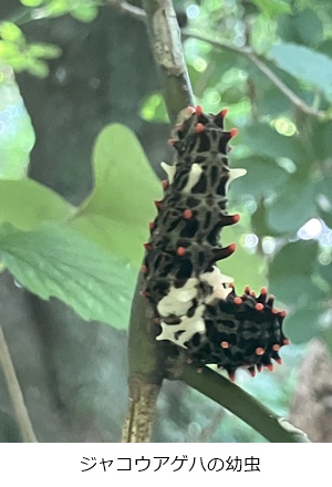 キジョランの葉にはアサギマダラの幼虫、蛹がみられました。