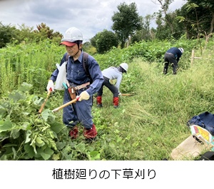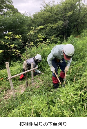 植樹したヤマザクラ周辺や伸びた下草の刈り取り作業を行いました。
