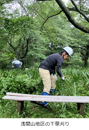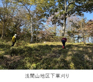 ヤブラン平地区、浅間山ハイキング路などの刈払いを行いました。