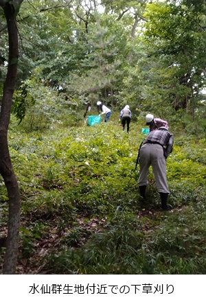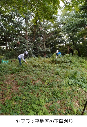 ヤブラン、コナラ実生、植樹などの廻りの下草刈りを行いました。