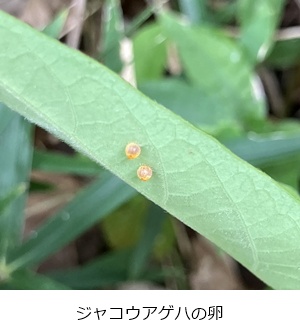 キジョランの葉にはアサギマダラが無事に旅立った蛹の抜殻がみられました。