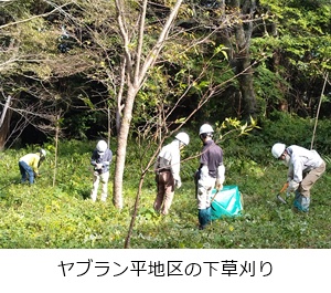 ヤブラン平地区で刈払機による下草の刈り取り作業を行いました。