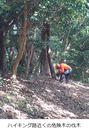 ハイキング路そばの危険木を伐木・玉切り、片付けを実施しました。