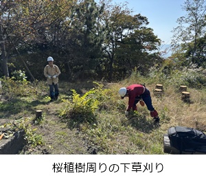 桜植樹周辺の下草刈りをしました。