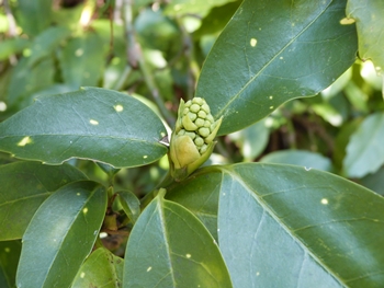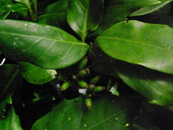葉は長楕円形で厚みがあり濃い緑色で光沢がある。
