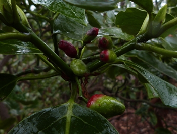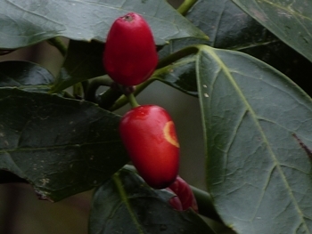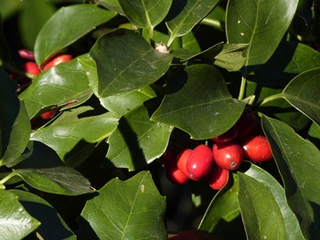 元禄3年(1690)に日本に来たドイツ人ケンペルは、常緑で冬に赤い実をつけるアオキ