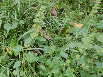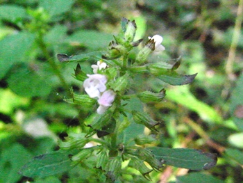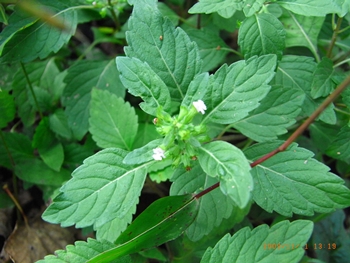 シソ科 トウバナ属 犬塔花 学名:Clinopodium micranthum 多年草。 葉には鋸歯があり、両面にまばらに毛が生える。 裏面に腺点がある。 夏から秋にかけて淡紫色を帯びた唇形花をつける。 萼は緑色で長い軟毛が多い。 よく似たトウバナは春から夏にかけて咲くので、区別できる。