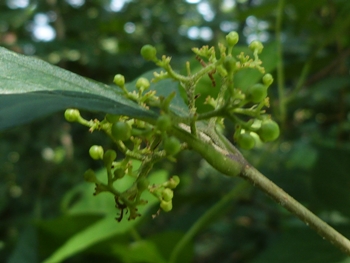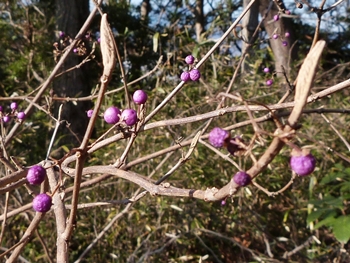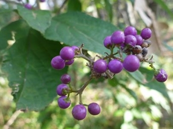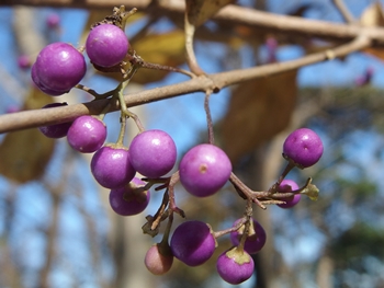 果実は球形で、秋に紫色に色づき、かすかな甘味がある。