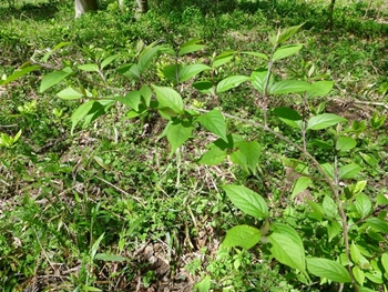葉は対生で、細かい鋸歯があり、葉先が尾状に細くなる。