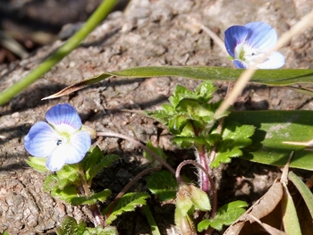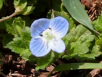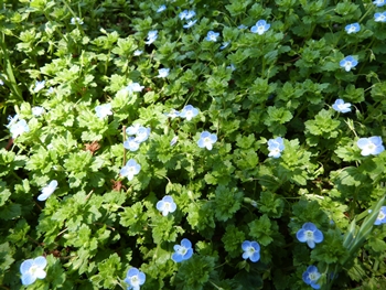オオバコ科 クワガタソウ属 大犬の陰嚢 学名:Veronica persica 別名:瑠璃唐草、天人唐草、 星の瞳 越年草。ヨーロッパ原産の帰化植物。 1887年に東京で確認され、大正時代初期に全国に拡大した。 早春に4枚の花弁を持つ青い花をつける。