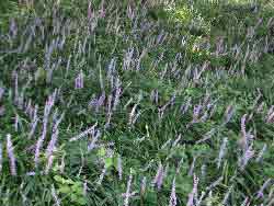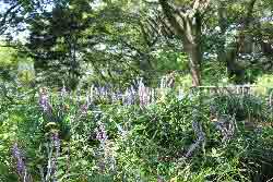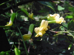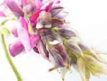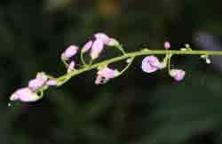花は秋に咲き、穂状花序に赤紫で甘い香りの豆の花を咲かせる。