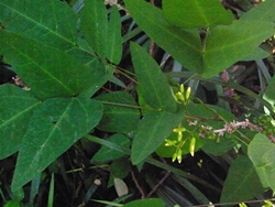 葉は3出複葉、小葉は草質で幅広く、とても大きい。